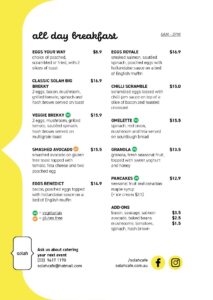 Solah Cafe Breakfast Menu Final PDF_01 Solah Cafe Breakfast Menu Final PDF_01 Leave a Reply Cancel replyYour email address will not be published. Required fields are marked *CommentName* Email* Website Save my name, email, and site URL in my browser for next time I post a comment.